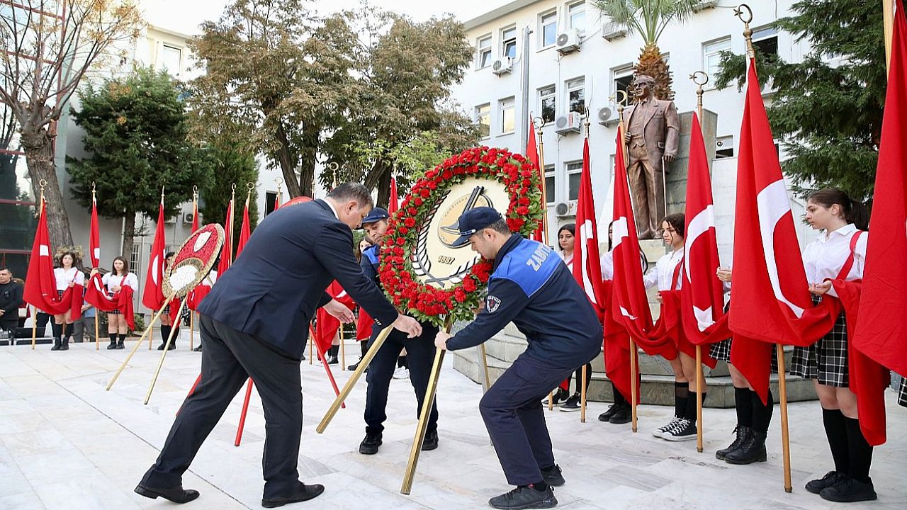 Karşıyaka Hükümet Konağı önünde yüzlerce Karşıyakalının katılımıyla yapılan törende Atatürk Anıtı’na çelenkler sunuldu. Ulu Önder Mustafa Kemal Atatürk’ün ebediyete intikal ettiği anda, saatler 09.05’i gösterdiğinde tüm yurtta olduğu gibi Karşıyaka’da da hayat adeta durdu. Caddeler ve sokaklardaki tüm yurttaşlar saygı duruşuna geçti. 2 dakika boyunca siren ve korna sesleri ilçenin dört bir yanında yankılanırken, duygu dolu anlar yaşandı. Saygı duruşunun ardından Karşıyakalılar, Ulu Önder’in Annesi Zübeyde Hanım'ın Anıt Mezarı’nı ziyaret etti. Karşıyaka Belediye Başkanı Dr. Cemil Tugay, eşi Öznur Tugay, CHP Karşıyaka İlçe Başkanı Levent Güçlü, meclis üyeleri, demokratik toplum örgütlerinin yönetici ve üyeleri, her yaştan Karşıyakalı, Zübeyde Hanım Anıt Mezarı’na karanfil bıraktı.