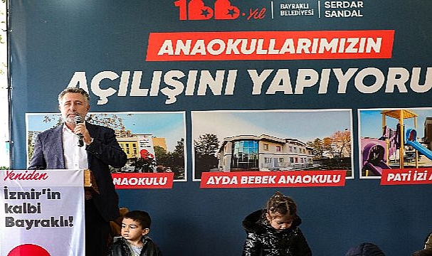 Bayraklı’daki eğitim yatırımları, inşa edilen okul öncesi eğitim kurumları ve öğrencilerinin başarılarıyla fark yaratan Bayraklı Belediyesi, inşasını tamamlayarak hizmete sunduğu 3 anaokulunun açılışını yaptı. 2 anaokulunun yapımına devam edildiği bir anaokulunun da yakın zamanda temelinin atılacağı belirtildi. 75’inci Yıl Mahallesi’ndeki Elif Bebek Anaokulu bahçesinde düzenlenen açılış törenine Başkan Serdar Sandal’ın yanı sıra CHP Bayraklı İlçe Başkanı Didem Gültekin, meclis üyeleri, muhtarlar, sivil toplum örgütlerinin temsilcileri, öğrenciler, veliler ve vatandaşlar katıldı. Başkan Sandal, açılış kurdelesini katılımcılar ve çocuklarla birlikte kesti.