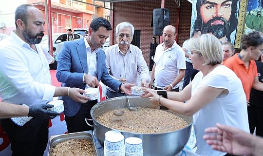 Bayraklı Belediyesi, Muharrem ayının manevi değerlerini yaşatmak ve bu özel günün anlamını tüm ilçeye ulaştırmak amacıyla, birlik, bereket ve dayanışmanın simgesi olan aşure dağıtımı gerçekleştirdi. Bu kapsamda; Sevgi Yolu, Çamlık Parkı, Üç Fidan Anıtı (Yamanlar) ve Aşık Mahzuni Şerif Kültür Merkezi ve Cemevi’nde toplam 5 bin kişiye aşure ikram edildi. bayraklı Belediye Başkanı İrfan Önal, dağıtım noktalarını ziyaret ederek vatandaşlarla buluştu, sohbet etti; dualar eşliğinde aşure kararak ilçe sakinlerine ikramda bulundu. Aşık Mahzuni Şerif Kültür Merkezi ve Cemevi’nde ayrıca aşure ikramı ve Kerbela Şehitlerini anma töreni düzenlendi. Başkan Önal’a belediye meclis üyeleri de eşlik etti. Sanatçılar tarafından sahnede seslendirilen deyişlerin ardından dua edildi, aşure karıldı ve dağıtıldı.
