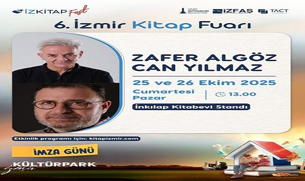 İzmir Büyükşehir Belediyesi’nin ev sahipliğinde, İZFAŞ ve TACT Fuarcılık iş birliğiyle Kültürpark’ta düzenlenen İZKİTAP – 6. İzmir Kitap Fuarı’nda hafta sonu boyunca fuarın imza alanlarında uzun kuyruklar bekleniyor. Ahmet Ümit, Can Yılmaz, Hidayet Karakuş, Nasuh Mahruki, Saygı Öztürk, Mavisel Yener, Mustafa Balbay, Piraye, Şükrü Erbaş, Sinan Meydan, İlyas Salman, Umut Sarıkaya, Yılmaz Aslantürk, Zafer Algöz, Zeynep Altıok gibi isimler, okurları için kitaplarını imzalayacak.Cumartesi Ahmet Ümit, Emin Çapa okurlarıyla buluşacak