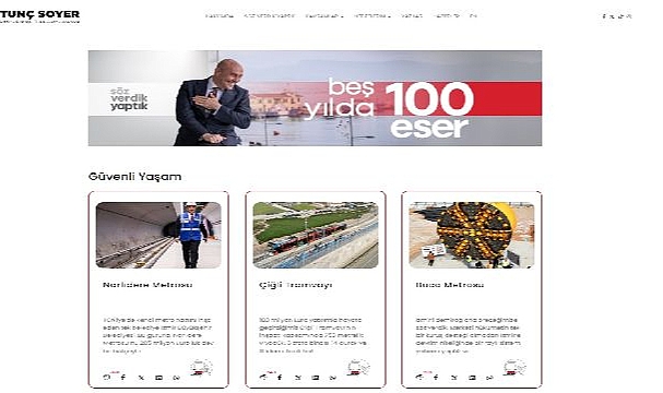 İzmir Büyükşehir Belediye Başkanı Tunç Soyer, göreve geldiği günden bugüne Türkiye’ye örnek olan ve İzmir tarihinin en büyük yatırımlarının yer aldığı 100 projesini tuncsoyer.com.tr sitesinde tanıttı. 2019 yılında “Aşkla İzmir” sloganıyla yola çıkan Başkan Tunç Soyer, 5 yılda yaşanan pandemi, deprem, tsunami, sel, yangın gibi doğal afetler, yüzde 500 artan döviz kuru, ekonomik kriz ortamına rağmen söz verdiği 165 projeyi yüzde 87 oranında tamamladı. Başkan Soyer, hazırlanan internet sitesinde kente dair vizyonunu, hedeflerini, kentin uyumlu bir şekilde kalkınması için uyguladığı yerel yönetim modelindeki kavramları anlattı. tuncsoyer.com.tr internet sitesi üzerinde, İzmir’in gelecek yüzyılını teminat altına alan 100 eser, kolaylıkla incelenebilecek “Beş yılda 100 eser” sayfasında tanıtıldı. 100 proje, Başkan Soyer’in hedefi olan “Güvenli Yaşam”, “Refahın Büyümesi ve Adil Dağılımı”, “Yerel Demokrasi”, “Sosyal Gelişme”, “Doğayla Uyum”, “Geçmişten Öğrenmek” ve “Geleceğin İnşası” başlıkları altında sınıflandırıldı.