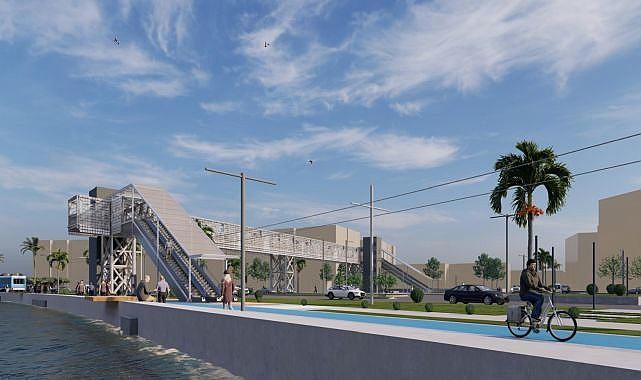 İzmir Büyükşehir Belediye Başkanı Tunç Soyer, Mustafa Kemal Sahil Bulvarı üzerindeki yaya ve araç trafiğini rahatlatacak Karataş Yaya Üst Geçidi’nin temelini attı