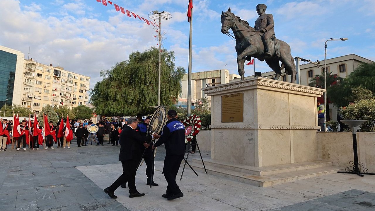 Bornova Cumhuriyet Meydanı'nda düzenlenen resmi törende Bornova Kaymakamı Muzaffer Şahiner, Bornova Belediye Başkanı Dr. Mustafa İduğ, 57. Topçu Tugayı Komutanı Tuğgeneral Halil Ünver ile siyasi parti ve sivil toplum kuruluşlarının temsilcileri Atatürk Anıtı’na çelenk koydu. Saatler 09.05’i gösterdiğinde tüm Türkiye'de olduğu gibi Bornova’da da hayat durdu. İki dakikalık saygı duruşunun ardından İstiklal Marşı okundu. Cumhuriyet Meydanı’ndaki törenin ardından Hatice Güzelcan Anadolu Lisesi öğrenci ve öğretmenlerinin hazırladığı, “Bir tutkudur Mustafa Kemal” oratoryosu Bilfen okulları Konferans Salonu’nda sunuldu. Etkinlikte Mustafa Kemal Atatürk’ün karakalem portresini çizen öğrencilerin eserleri Bornova Belediye Başkanı Dr. Mustafa İduğ, Bornova Kaymakamı Muzaffer Şahiner ve 57. Topçu Tugayı Komutanı Tuğgeneral Halil Ünver’e hediye edildi.