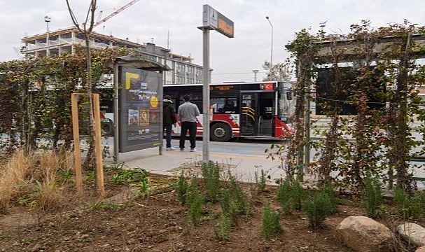 İzmir Büyükşehir Belediye Başkanı Dr. Cemil Tugay’ın daha az suyla daha yeşil bir İzmir hedefiyle başlattığı yeşil dönüşüm çalışmaları, viyadük altları, refüjler ve kavşaklar gibi kamusal alanların ardından otobüs duraklarıyla devam ediyor. İzmir Büyükşehir Belediyesi Park ve Bahçeler Dairesi Başkanlığı, kent merkezinde hizmet veren ESHOT otobüs duraklarının üstünde ve çevresinde peyzaj çalışmaları başlattı. İklim krizine duyarlı, az su tüketen kurakçıl bitkilerle gerçekleştirilen peyzaj çalışmaları kapsamında durak çevreleri yeşil bir görünüme kavuşturuluyor. Durakların zemininden tavanına kadar sarıcı bitkilere yer veriliyor. İlk etapta 21 durak için belirlenen yeşil dönüşüm çalışmalarının, ilerleyen süreçte İzmir geneline yayılması hedefleniyor. Peyzaj çalışmaları tamamlanan otobüs durakları, hem kent estetiğine değer katıyor hem de durak çevresini daha temiz bir görünüme kavuşturuyor.“Kuraklığa dayanıklı bitkiler tercih ediyoruz”Çalışmalar hakkında bilgi veren Park ve Bahçeler Dairesi Başkanlığı Güney Alanlar Bakım Şube Müdürlüğü’nde görevli Peyzaj Mimarı Koray Aydın, “Bu projeye başkanımızın talimatıyla başladık. Amacımız, durak yüzeylerinin çevresini ve çatılarını yeşillendirerek iklimsel, estetik ve görsel açıdan nitelikli bir uygulamayı hayata geçirmek. Projeyle İzmir’in estetik görünümüne katkı sağlıyoruz. Başkanımızın bu konuda özel bir hassasiyeti bulunuyor. Kullandığımız bitkilerde, diğer alanlarda olduğu gibi kuraklığa dayanıklı türleri tercih ediyoruz. Pennisetum, lavanta, lavantin ve biberiye gibi bitkiler kullanıyoruz. Durak arkalarında ise sarıcı bitkilere yer veriyoruz” dedi.“İzmir’e çok yakışan bir proje oldu”